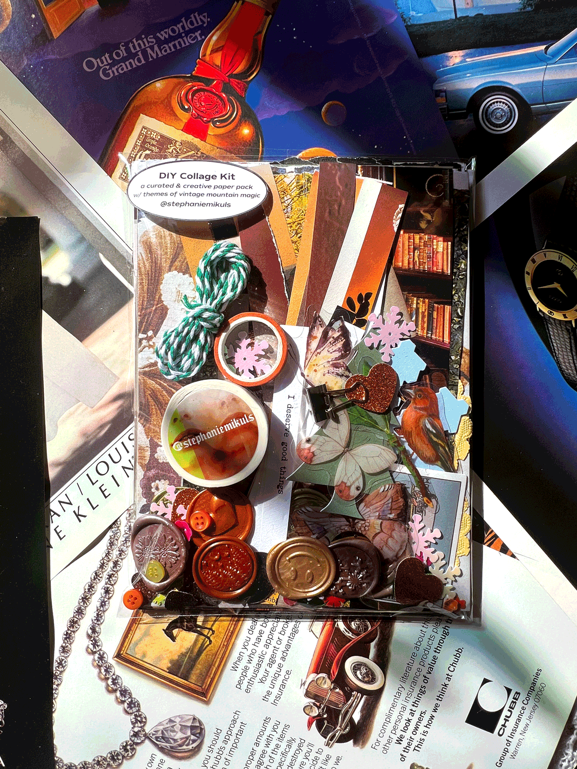 These curated collections of vintage & creative materials transform the act of collaging into a meditative practice. Each kit is one-of-a-kind, and contains 100+ pieces chosen for their ability to inspire self-expression and inner exploration. Everything you need to create meaningful art for junk journals, vision boards, or any creative project.